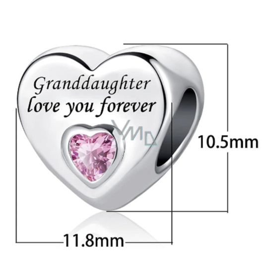 Charm Sterlingové stříbro 925 Vnučka tě miluje navždy srdce, korálek na náramek rodina