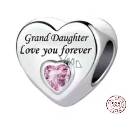 Charm Sterlingové stříbro 925 Vnučka tě miluje navždy srdce, korálek na náramek rodina