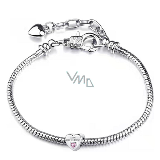 Řekněte své babičce tímto korálkem se srdíčkem, že ji budete mít v srdci napořád. Láska je nejvíc co můžeme od života dostat. Korálek je vyroben ze sterlingového stříbra je doplněn o růžový kubický zirkon a má vyrytý text: "Grand daughter love you forever" - Vnučka tě miluje navždy. Ideální dárek pro všechny milované babičky.