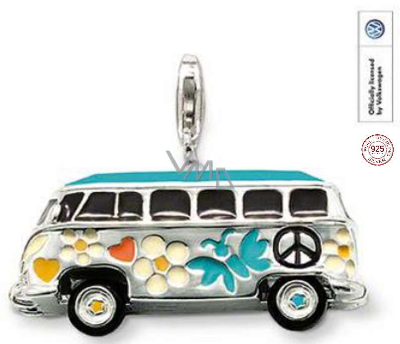 Charm Sterlingové stříbro 925 Volkswagen Bus, humří spona přívěsek na náramek cestování