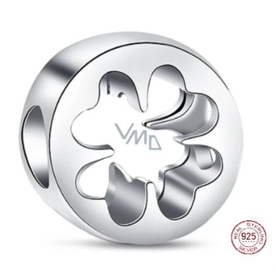 Charm Sterlingové stříbro 925 Vystřižený čtyřlístek - Štěstí a Odvaha, korálek na náramek příroda