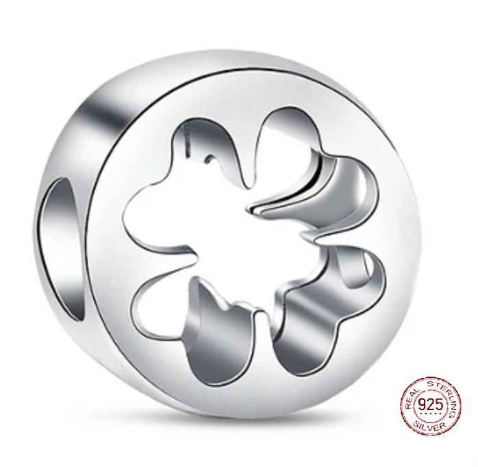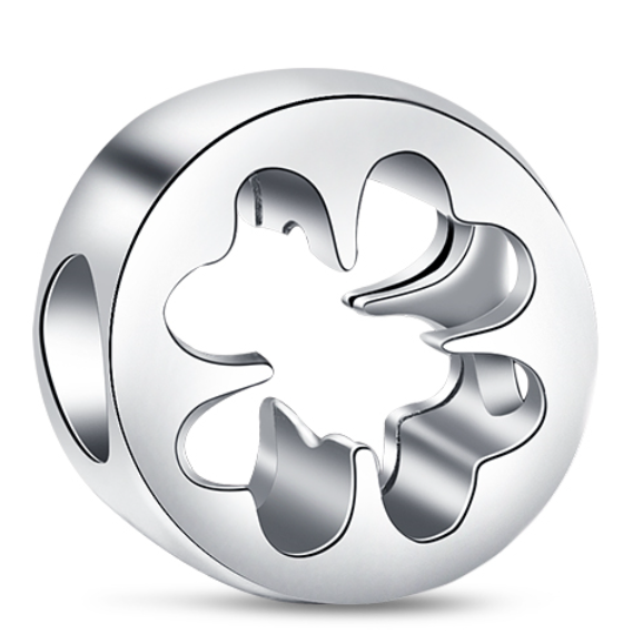 Charm Sterlingové stříbro 925 Vystřižený čtyřlístek - Štěstí a Odvaha, korálek na náramek příroda