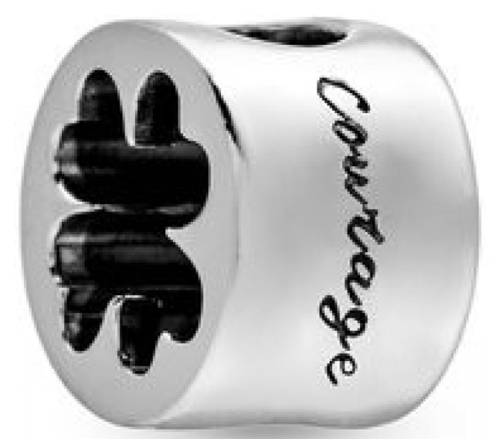 Přidejte ke svému náramku Talismany pro štěstí a osobní symboly, jako je tento přívěsek Čtyřlístek z Mincovního sříbra 925. Otevřený design vám umožní zahlédnout náramek, na kterém je umístěn. Zdobený slovy „štěstí“ a „Odvaha“ je smysluplným doplňkem vaší sbírky, který vám připomene něco, co máte rádi.
