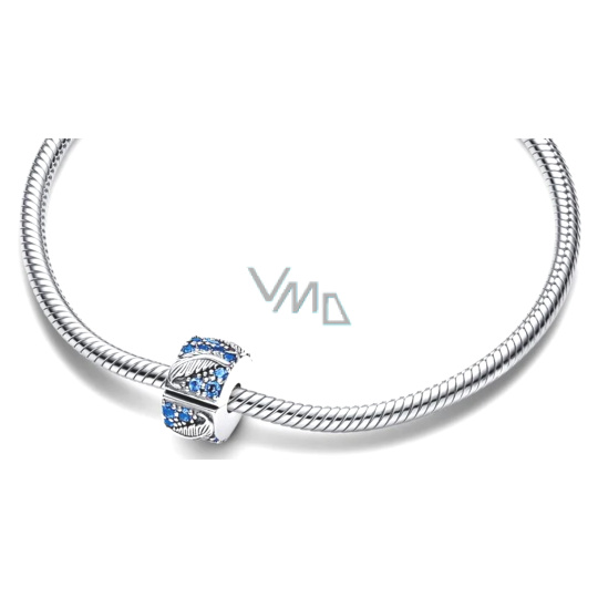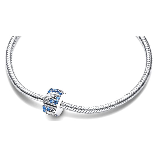 Vzlétněte s klipovým přívěskem Zahnuté pírko a pavé. Tento přívěsek, ručně dokončovaný ze sterlingového stříbra, obsahuje modré umělé krystaly a plovoucí Pírka s realistickou texturou. Inspirujte se myšlenkou, že každé pírko má moc dát vám křídla, a darujte ho tomu, kdo vás vždycky pozvedne. Upozornění: tento klipový přívěsek neobsahuje silikonovou vložku, takže pokud nebude umístěn na závitech (dva vyvýšené oddělovače na náramku), sklouzne.