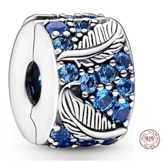 Charm Sterlingové stříbro 925 Zahnuté peříčko & pavé, stopper, klipový korálek na náramek příroda