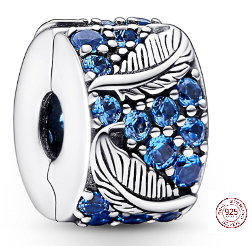 Vzlétněte s klipovým přívěskem Zahnuté pírko a pavé. Tento přívěsek, ručně dokončovaný ze sterlingového stříbra, obsahuje modré umělé krystaly a plovoucí Pírka s realistickou texturou. Inspirujte se myšlenkou, že každé pírko má moc dát vám křídla, a darujte ho tomu, kdo vás vždycky pozvedne. Upozornění: tento klipový přívěsek neobsahuje silikonovou vložku, takže pokud nebude umístěn na závitech (dva vyvýšené oddělovače na náramku), sklouzne.