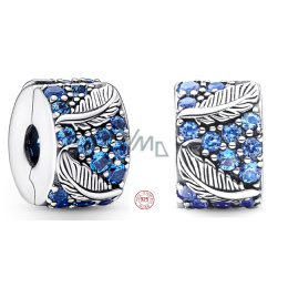Charm Sterlingové stříbro 925 Zahnuté peříčko & pavé, stopper, klipový korálek na náramek příroda