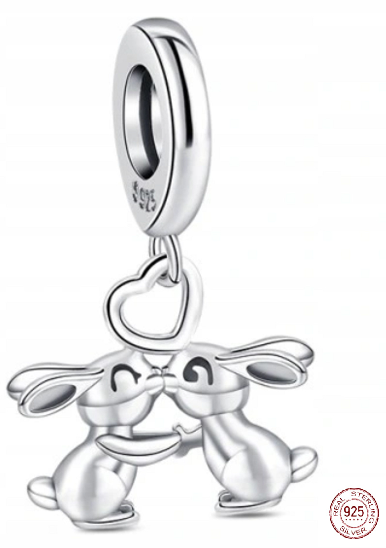 Charm Sterlingové stříbro 925 Zamilovaní zajíčci, přívěsek na náramek zvíře