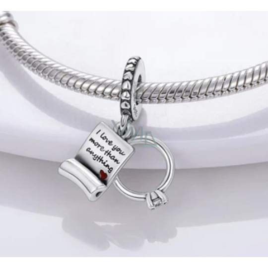 Charm Sterlingové stříbro 925 Zásnubní prsten a svatební slib, Miluji tě víc než cokoliv 2v1, přívěsek na náramek láska