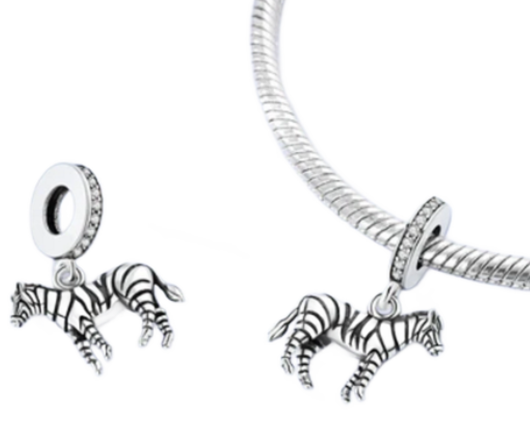 Charm Sterlingové stříbro 925 Zebra kůň v pyžamu, přívěsek na náramek zvíře