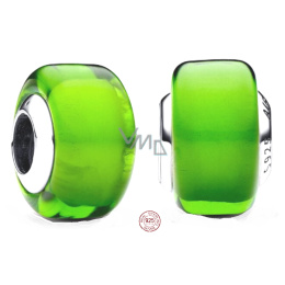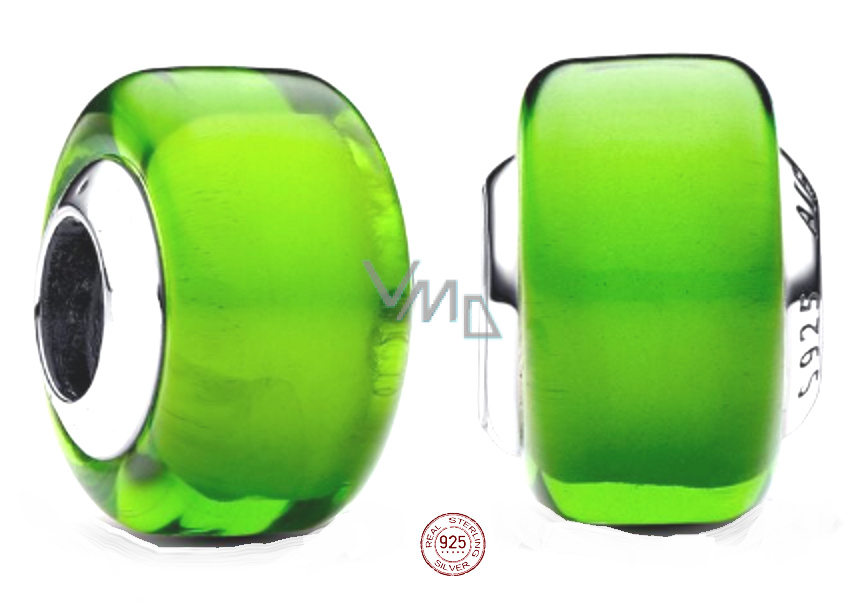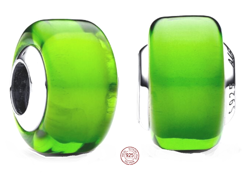 Charm Sterlingové stříbro 925 Zelené Murano sklo, korálek na náramek symbol