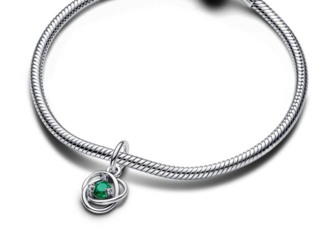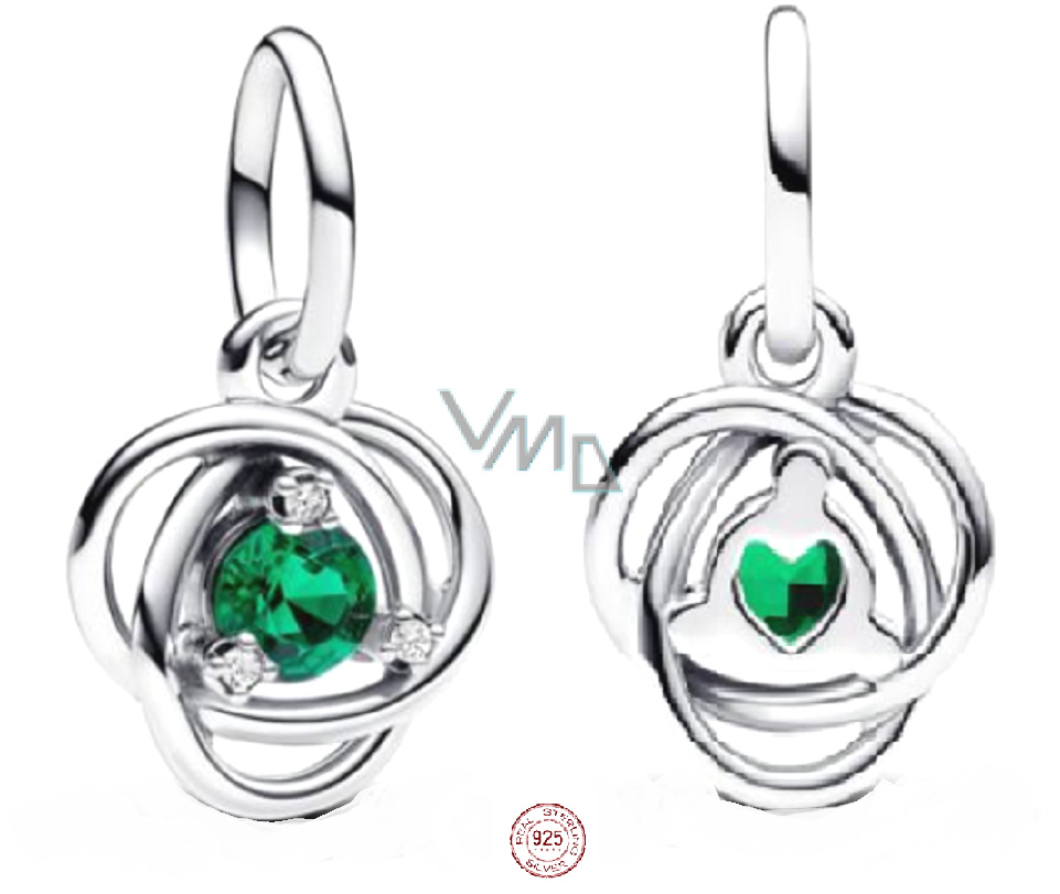Charm Sterlingové stříbro 925 Zelený kruh věčnosti květen, přívěsek na náramek symbol