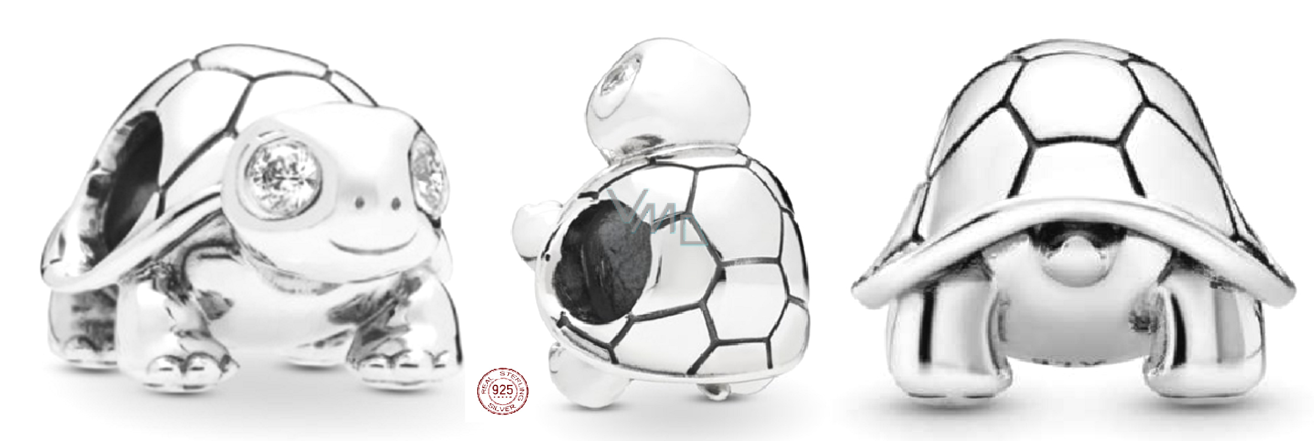 Charm Sterlingové stříbro 925 Želva s kubickou zirkonií, korálek na náramek, zvíře