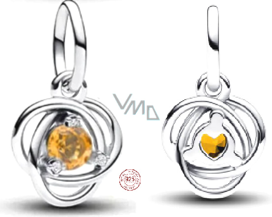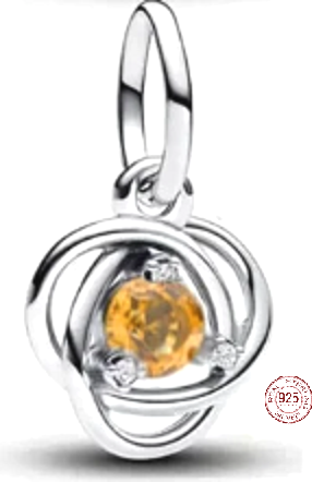 Charm Sterlingové stříbro 925 Žlutý kruh věčnosti listopad, přívěsek na náramek symbol
