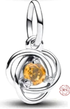 Charm Sterlingové stříbro 925 Kruh věčnosti Žlutý, listopad, přívěsek na náramek symbol