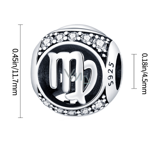 Charm Sterlingové stříbro 925 znamení zvěrokruhu Panna + zirkony, korálek na náramek