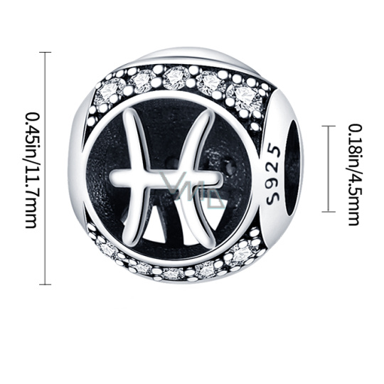 Charm Sterlingové stříbro 925 znamení zvěrokruhu Ryby + zirkony, korálek na náramek
