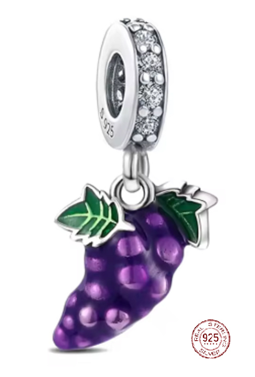Charm Sterlingové stříbro 925Hrozen, přívěsek na náramek, symbol hojnosti, radosti a životní energie, jídlo