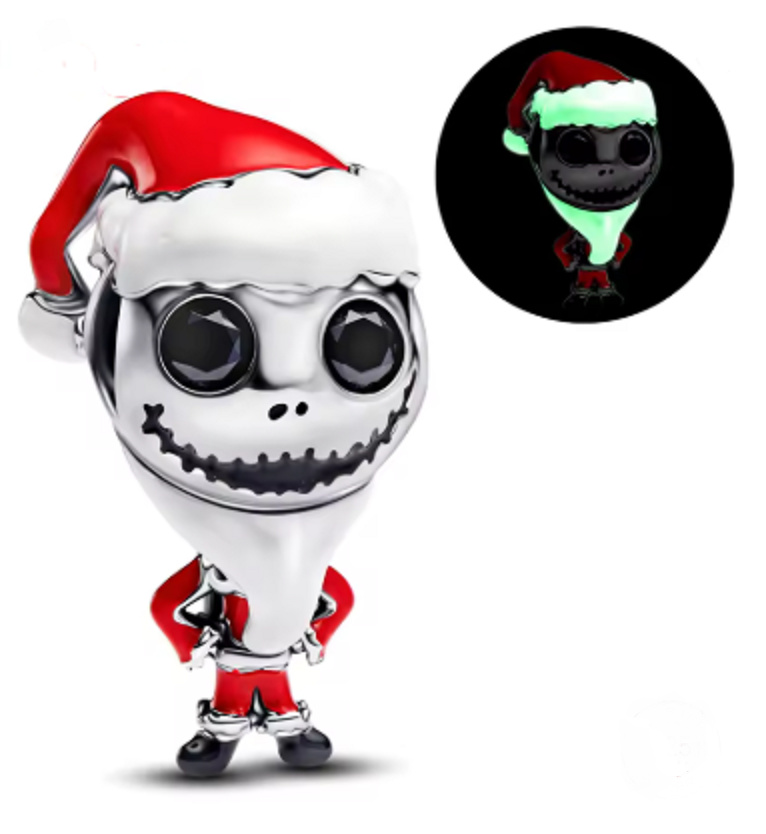 Legendární Jack Skellington v převleku za Santy Clause svítí ve tmě, přichází jako originální přívěsek. Tento šperk z kolekce Noční můra před Vánoci je zdobený červeným smaltem a černými detaily, které podtrhují jeho nezaměnitelný vzhled.