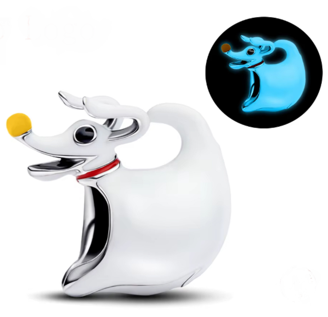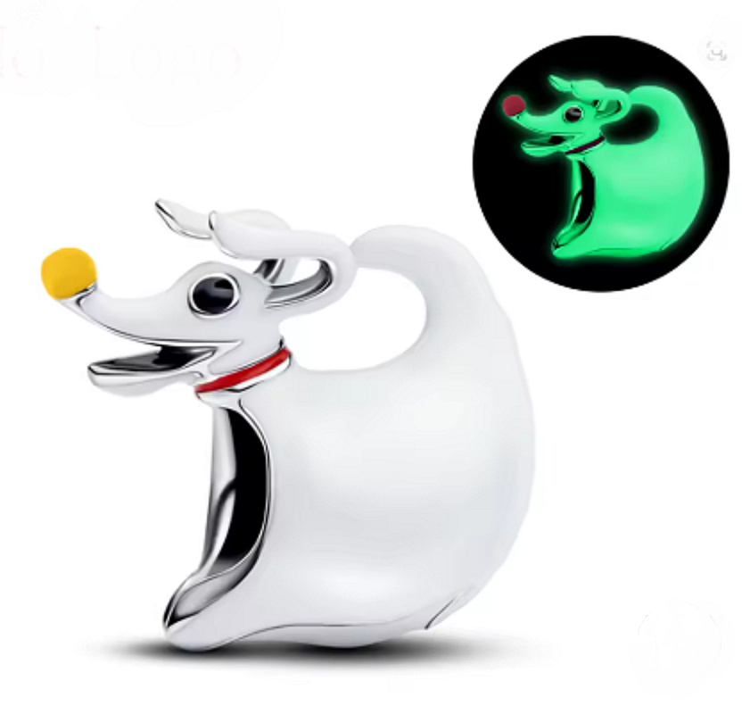 Rozkošný duchovský pejsek Zero svítí ve tmě z kultovního filmu Tima Burtona Noční můra před Vánoci přichází v podobě originálního přívěsku. Jeho průsvitné tělíčko, červený obojek a ikonický oranžový dýňový čumáček z něj dělají neodolatelný šperk pro všechny fanoušky temné pohádkové atmosféry.
