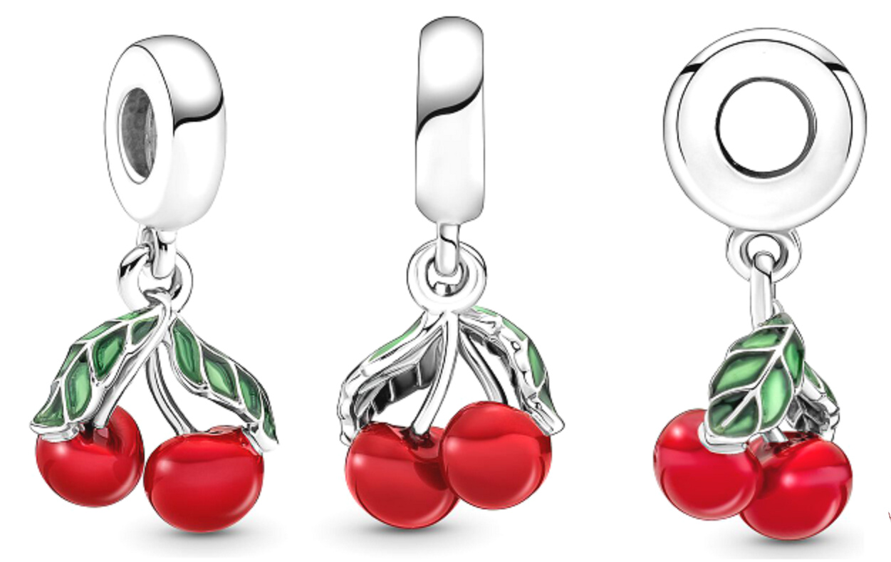 Doplňte svůj náramek o tento přívěsek v podobě třešní, který mu dodá krásnou výraznou barvu. Tento ovocný visací přívěsek, vyrobený ze sterlingového, obsahuje dvojici zralých červených třešní s detailními zelenými lístky, které jsou ručně dokončené průhledným smaltem. Noste ho samostatně nebo ho kombinujte s dalšími ovocnými přívěsky a proměňte své oblíbené šperky ve směsici lahodných, sběratelských sladkých letních plodů.
