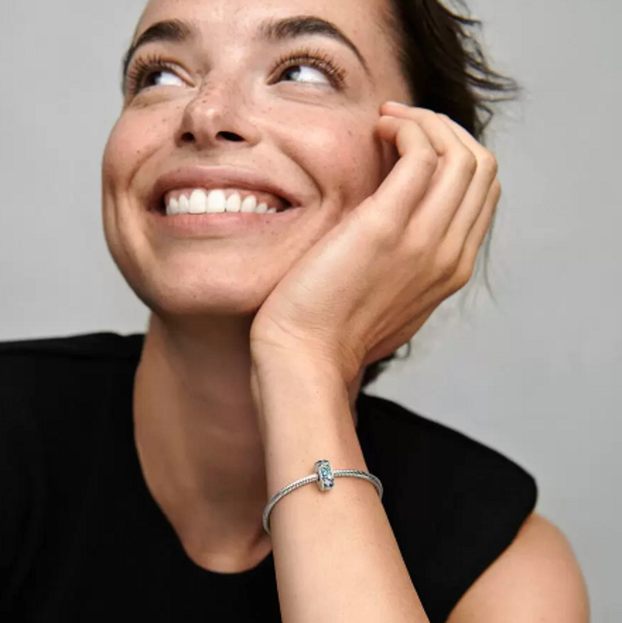 S klipovým přívěskem Tropická hvězdice a mušle si můžete představovat slunečné dny na surfu a v písku. Je inspirován poklady nalezenými na pláži, obsahuje mušle a mořské hvězdice obklopené detaily z modrých a tyrkysových umělých krystalů, které představují třpytivé Vlny oceánu. Tento klipový přívěsek je opatřený Silikonovým středem, který ho drží na místě. Znamená to, že se nehodí k použití na dva závity (vyvýšené přívěskové oddělovače). Dá se umístit kdekoli jinde na náramku pro bezstarostnou plážovou náladu.