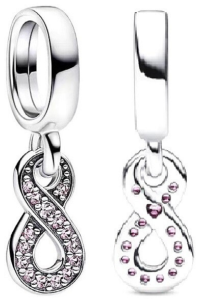 Ukažte, že vaše láska sahá do nekonečna a ještě dál, pomocí přívěsku. Vrcholný symbol věčného spojení, symbol nekonečna, byl přepracován v mírně asymetrickém tvaru s růžovým třpytem na přední straně. Tento přívěsek nekonečna, který je připevněn ke kauci nahoře pomocí menší smyčky, má na zadní straně výřez ve tvaru srdce, kde se jeho části překrývají. Darujte ho příteli nebo členovi rodiny, aby věděl, že vaše pouto bude trvat navždy a ještě déle.