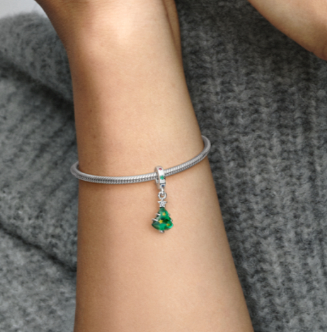Zazařte letos o svátcích s visícím přívěskem Třpytivý vánoční stromeček. Zachyťte pravé kouzlo svátků s tímto visícím přívěskem se zeleným umělým krystalem ve tvaru stromku posetým třpytivým zlatým smaltem, který představuje Hvězdy. Na druhé straně jsou podél větví stromku zasazeny různobarevné umělé kameny. Třpytivý, zářivě barevný vánoční přívěsek dodá vaší sbírce přívěsků sváteční styling, přidejte ten nejslavnostnější nádech.