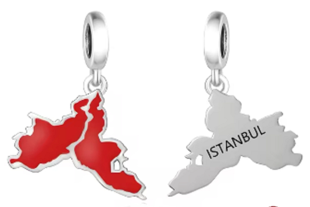 Charm Turecko, Istambul vlajka - houpající se mapa, přívěsek na náramek cestování