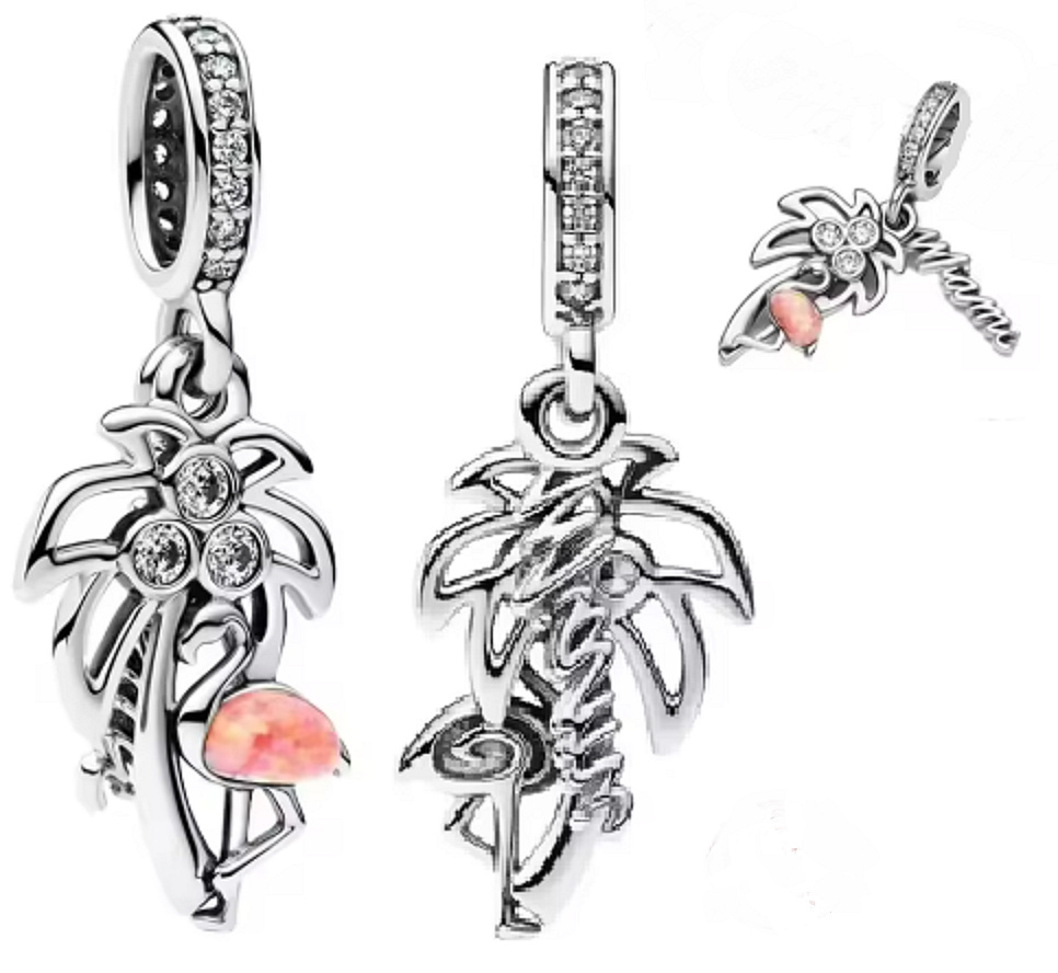 Zachyťte kouzlo sluncem zalité Floridy! Tento stylový přívěsek vás zavede přímo na pláže Miami – města, kde palmy šumí v rytmu oceánu a Plameňáci dodávají životu barvy. Design kombinuje elegantní palmu osázenou třpytivými Zirkony a roztomilého plameňáka s růžovým Opálem.