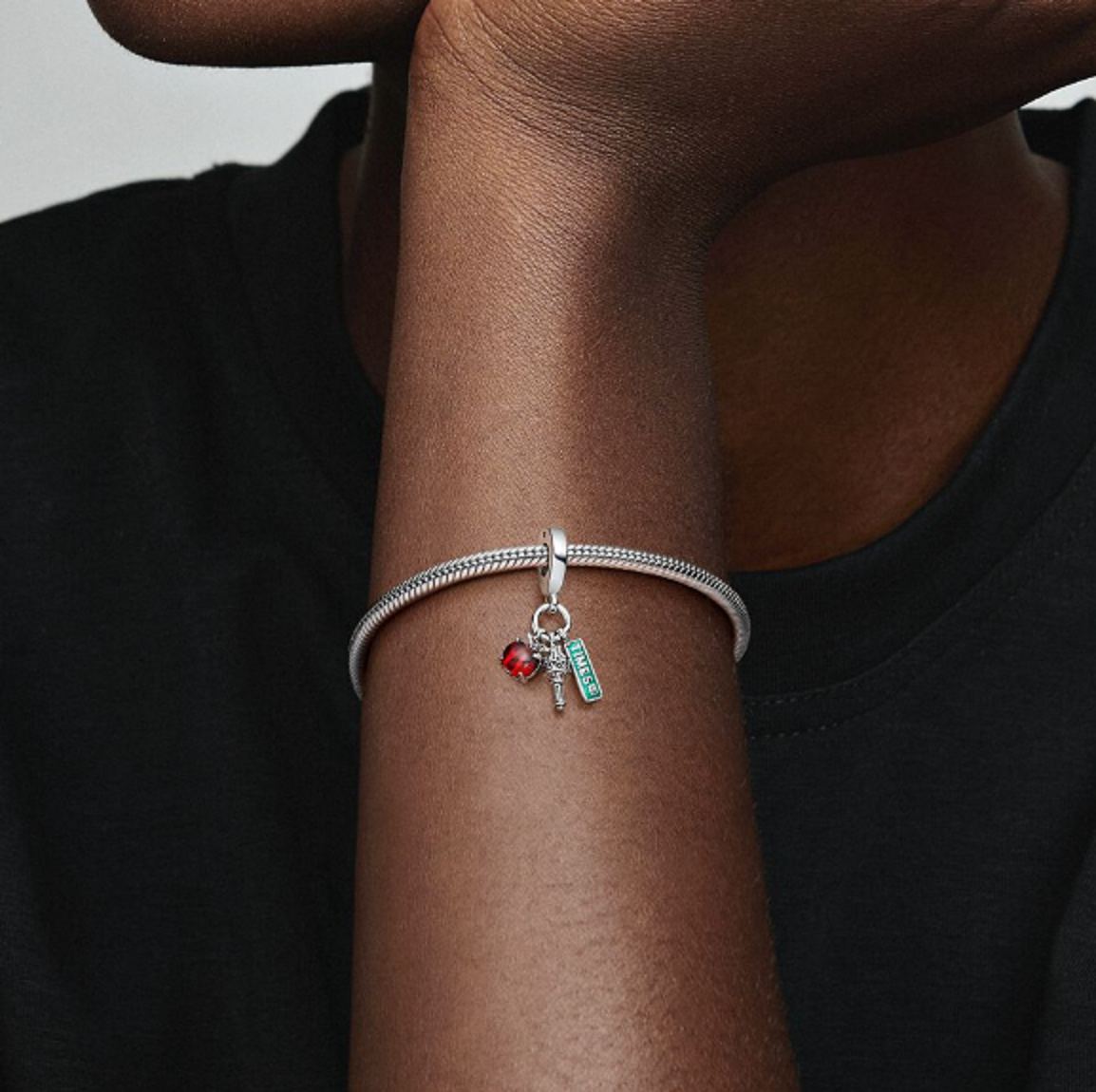 Označte své oblíbené vzpomínky pomocí NYC. Přeneste si s sebou nezaměnitelnou atmosféru Velkého jablka s tímto přívěskem se symboly New Yorku. Kombinace červeného jablka z Muránského skla, slavné pochodně Sochy Svobody a slavné Páté Av. Design pouličního nápisu v modrozeleném smaltu, tento přívěsek symbolizuje nekonečné sny, které město má. Přineste si domů malý kousek velkoměsta pro sebe nebo někoho blízkého vašemu srdci.