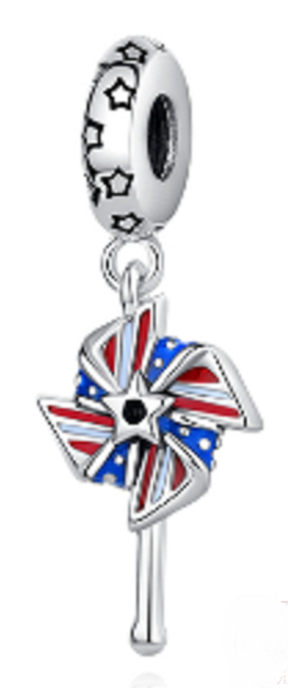 Přemýšlíte, co si přivezete z výletu z USA? Kupte si tento přívěsek na náramek s motivem větrníku v barvách vlajky USA a vzpomeňte si na tento výlet, kdykoliv se podíváte na svůj náramek.