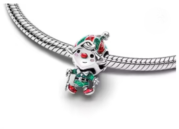 Roztomilý Vánoční skřítek (Elf) v zeleno-červeném oblečku se třpytivými detaily je dokonalým doplňkem pro sváteční čas. Tento přívěsek představuje věrného pomocníka Santa Clause, který drží sladkou cukrovou hůlku a přináší radost, kouzlo a vánoční náladu.