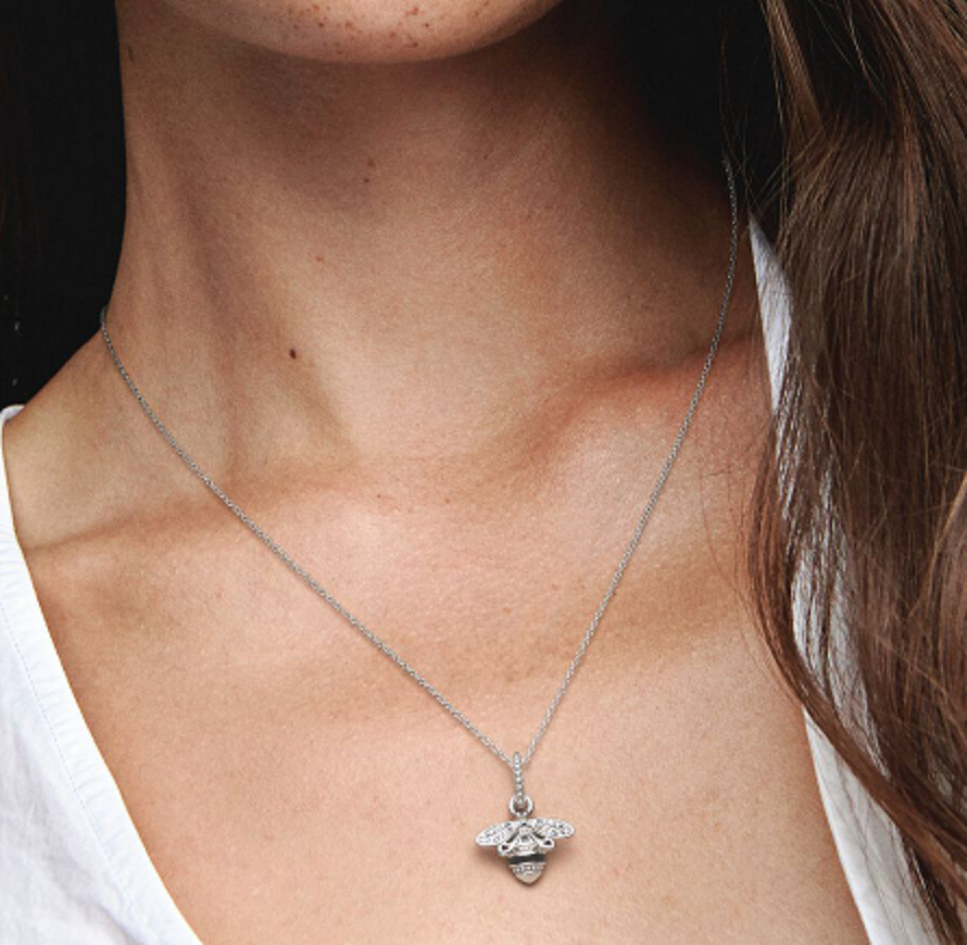 Majestátní včela byla interpretována v tomto přívěsku, který ji zobrazuje s otevřenými křídly. Třpytivý přívěsek symbolizuje důležitost spojení a připomíná vám, abyste byli vždy otevření a přívětiví ke světu. Inspirovaný silným smyslem pro komunitu, který je charakteristický pro včelí úly, je přívěsek zdoben kamennými detaily kubické zirkonie a ručně aplikovaným černým smaltem. Nechte včelí přívěsek otevřít vaši mysl a přesvědčit vás, že nic není nemožné a že život je sladší, když spolu žijete v míru a harmonii.