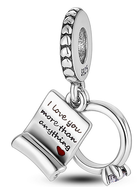 Charm Zásnubní prsten a svatební slib, Miluji tě víc než cokoliv 2v1, přívěsek na náramek láska