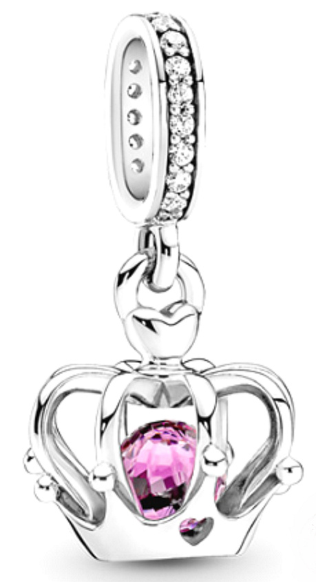 Dodejte svému vzhledu majestátní nádech s přívěskem koruny. Kouzlo, inspirované ozdobnými korunami, které nosí královské rodiny po celém světě, obsahuje volný, uměle vyrobený růžový krystal zapouzdřený v koruně. Přidejte tento přívěsek jako slávu na svůj náramek pro zvláštní okamžik každý den a upravte jej s dalšími kousky.