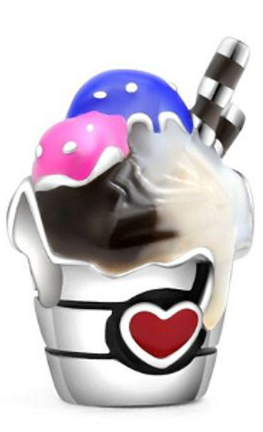 Přidejte si do náramku dávku energie s tímto přívěskem zmrzlinového poháru. Jemně vytvořený a podrobně domalován barevným smaltem, dává hold každodenním rituálům a oblíbeným požitkům a slouží připomenutí trávit čas s cennými přáteli. Tento sladký přívěsek má tvar misky na zmrzlinu, kterou zdobí červené smaltované srdíčko.