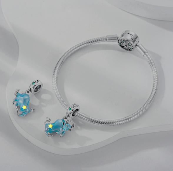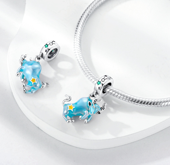 Představujeme okouzlující „kouzlo znamení zvěrokruhu Býka“ – pozoruhodný doplněk k vašemu kouzelnému náramku, který vzdává hold neochvějné a smyslné osobnosti Býka.