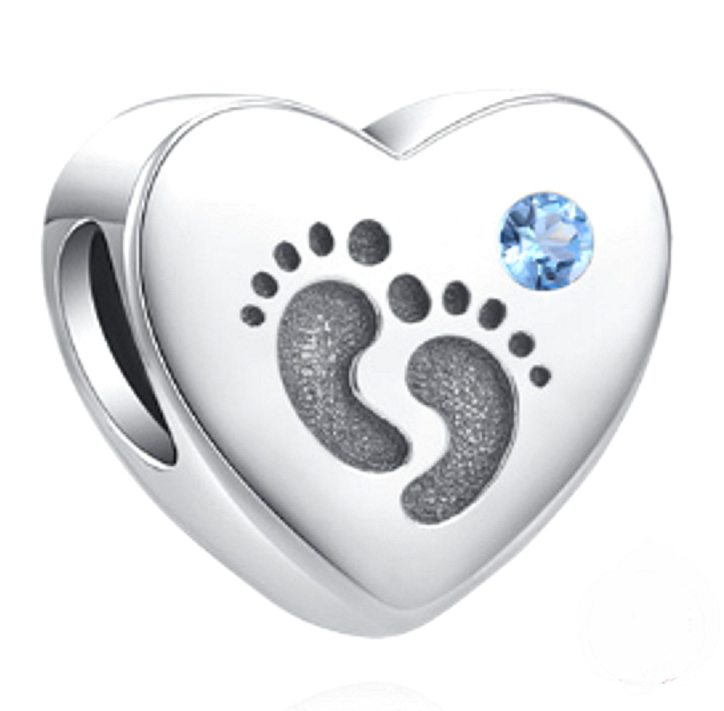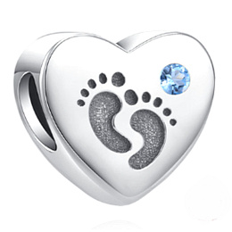 Módní přívěsek ve tvaru srdce s motivem dětských nožiček a zdobený lesklou kubickou zirkonie. Oboustranný model. Zdůrazněte, jak moc milujete své dítě a noste s hrdostí tento úžasný symbol. Tento jedinečný model se bude skvěle vyjímat na vašem náramku nebo řetízkovém náhrdelníku.
