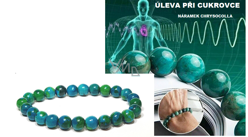 Chryzokol proti cukrovce, náramek elastický, kulička 8 mm / 16 - 17 cm, kámen krále Šalamouna
