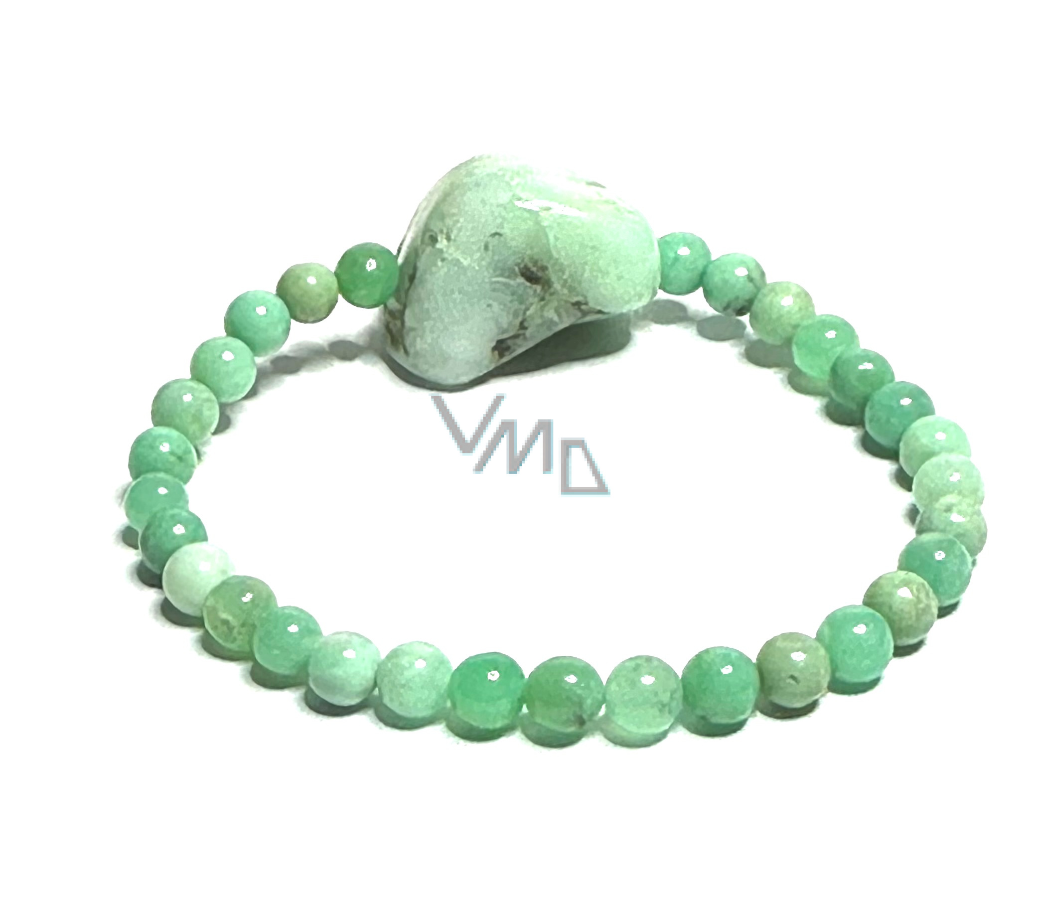 Chryzopras náramek elastický přírodní kámen, kulička 6 mm + 3 x 2 cm nepravidelný tvar / 16 - 17 cm, kámen harmonie rodinných vztahů