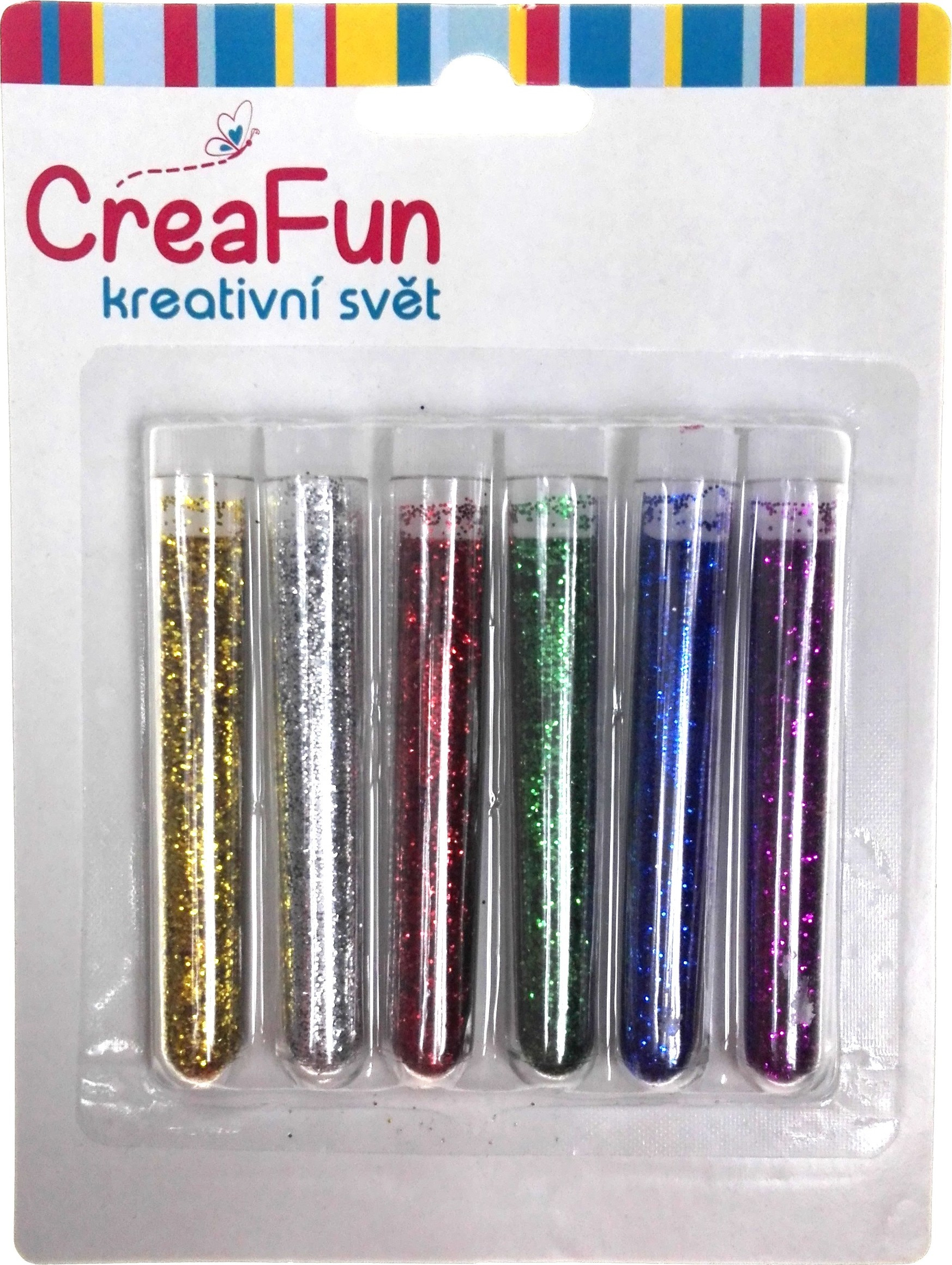CreaFun Dekorační třpytky barevné dlouhé tuby sada 6 x 3 g