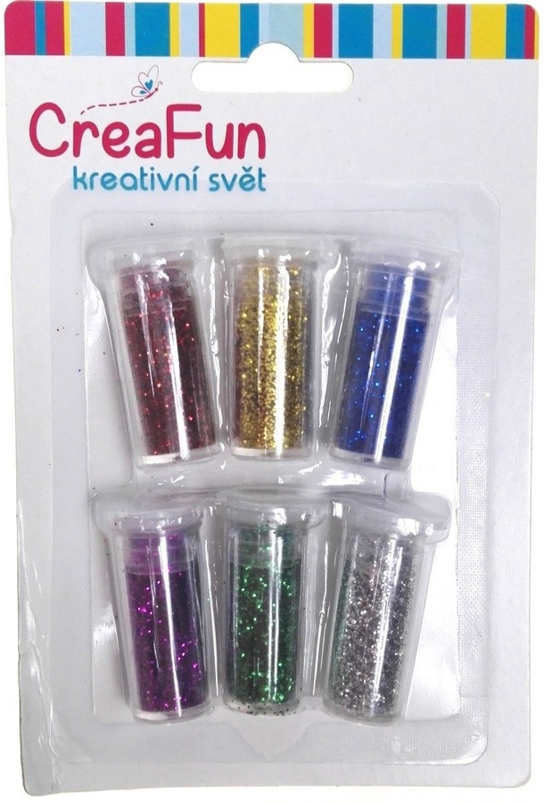 CreaFun Dekorační třpytky barevné sada 6 x 3 g