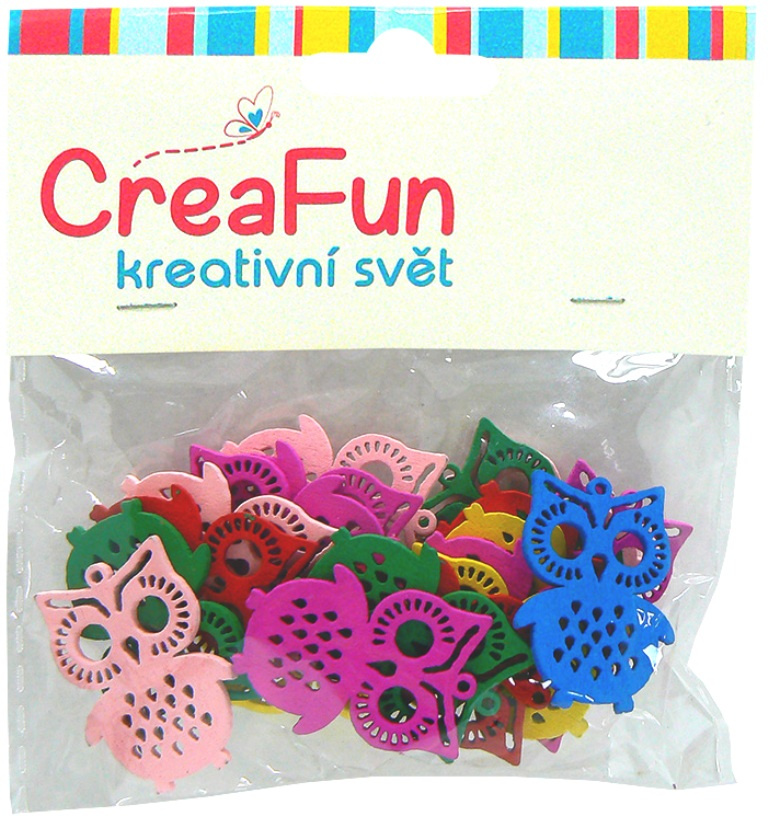 CreaFun Dřevěné přívěsky Sova mix barev 20 kusů