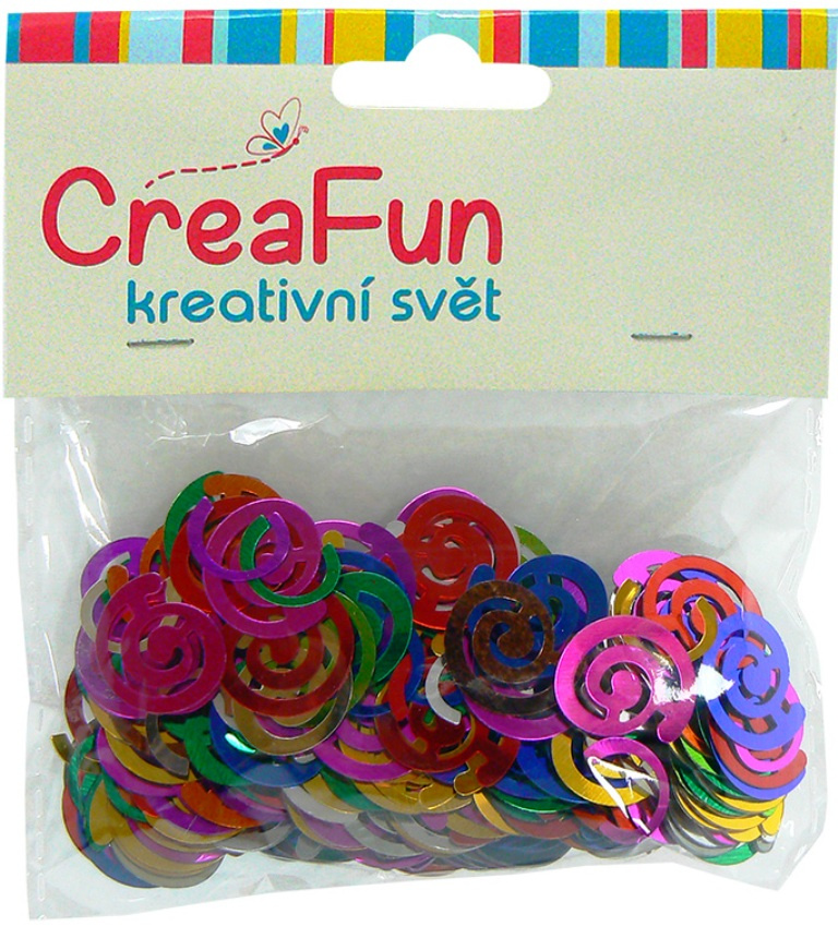 Balení konfetů s motivem spirálek. Nesmí chybět na pořádné oslavě! Používá se zejména, jako dekorace na stůl.
