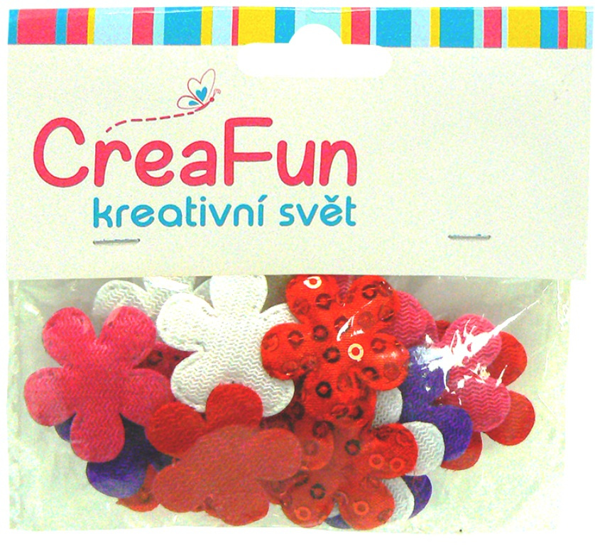 CreaFun Textilní dekorace Květina s flitry mix barev 28 x 28 mm 20 kusů