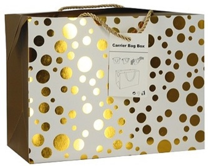 Dárková papírová taška krabice 18 x 12 x 9 cm uzavíratelná, se zlatými kolečky