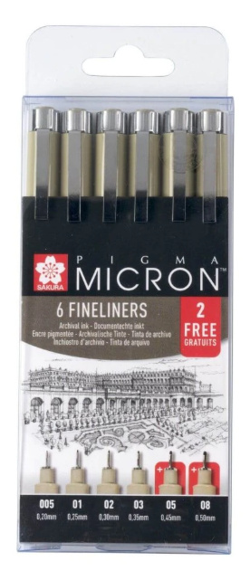 Vynikající kreslicí linery pro profesionální umělce i nadšené výtvarníky. Speciální inkoust Super Ink – voděodolný a světlostálý. Snadné použití v kombinaci např. s akvarely, inkoust se na vlhkém povrchu nerozpíjí. Zpevněný ocelový hrot je dostatečně dlouhý pro použití se šablonami. Balení obsahuje 3 černé linery s různými hroty. barva