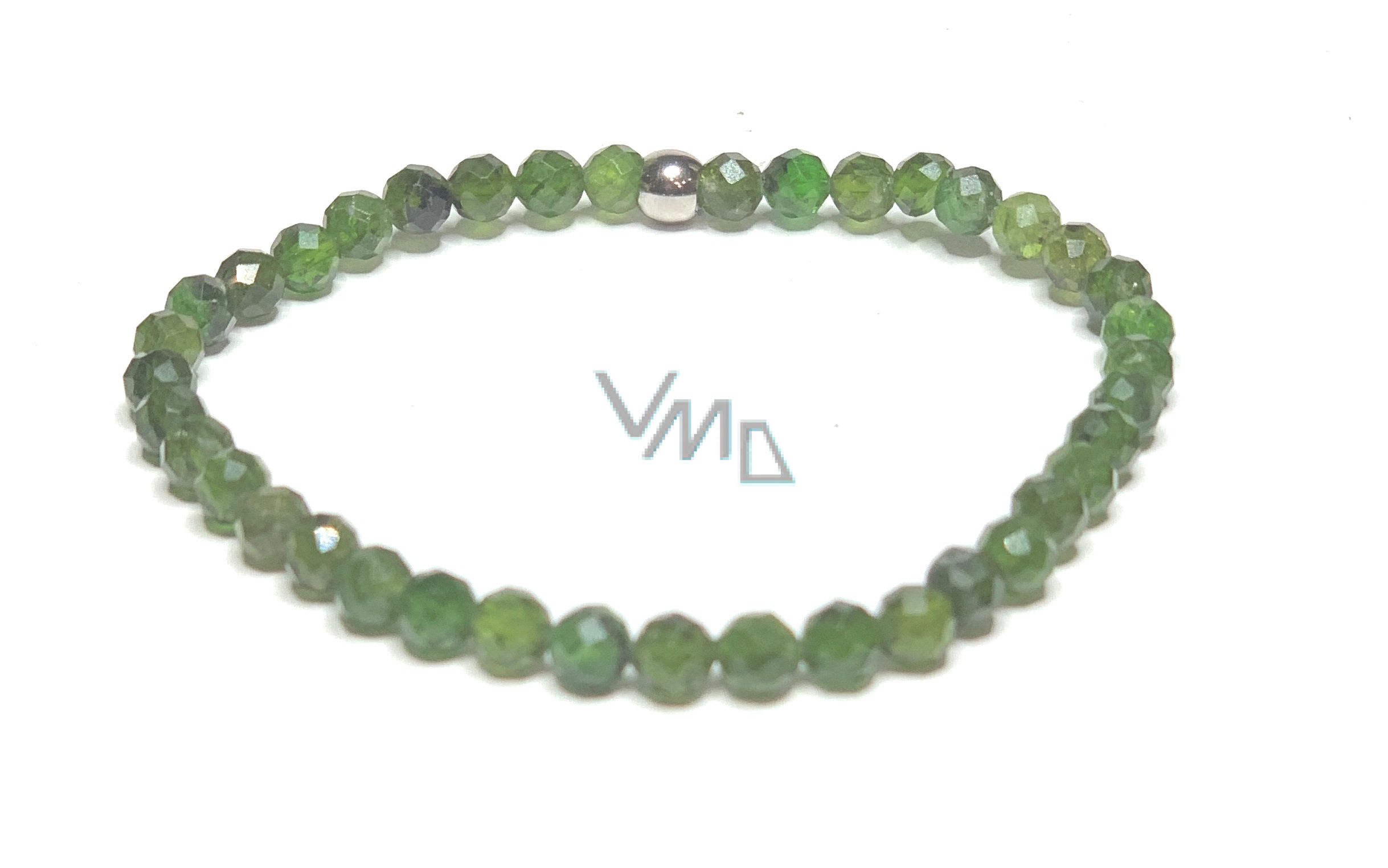 Diopsid fazet náramek elastický přírodní kámen, kulička 4 mm / 16 - 17 cm, kámen dvojí očisty