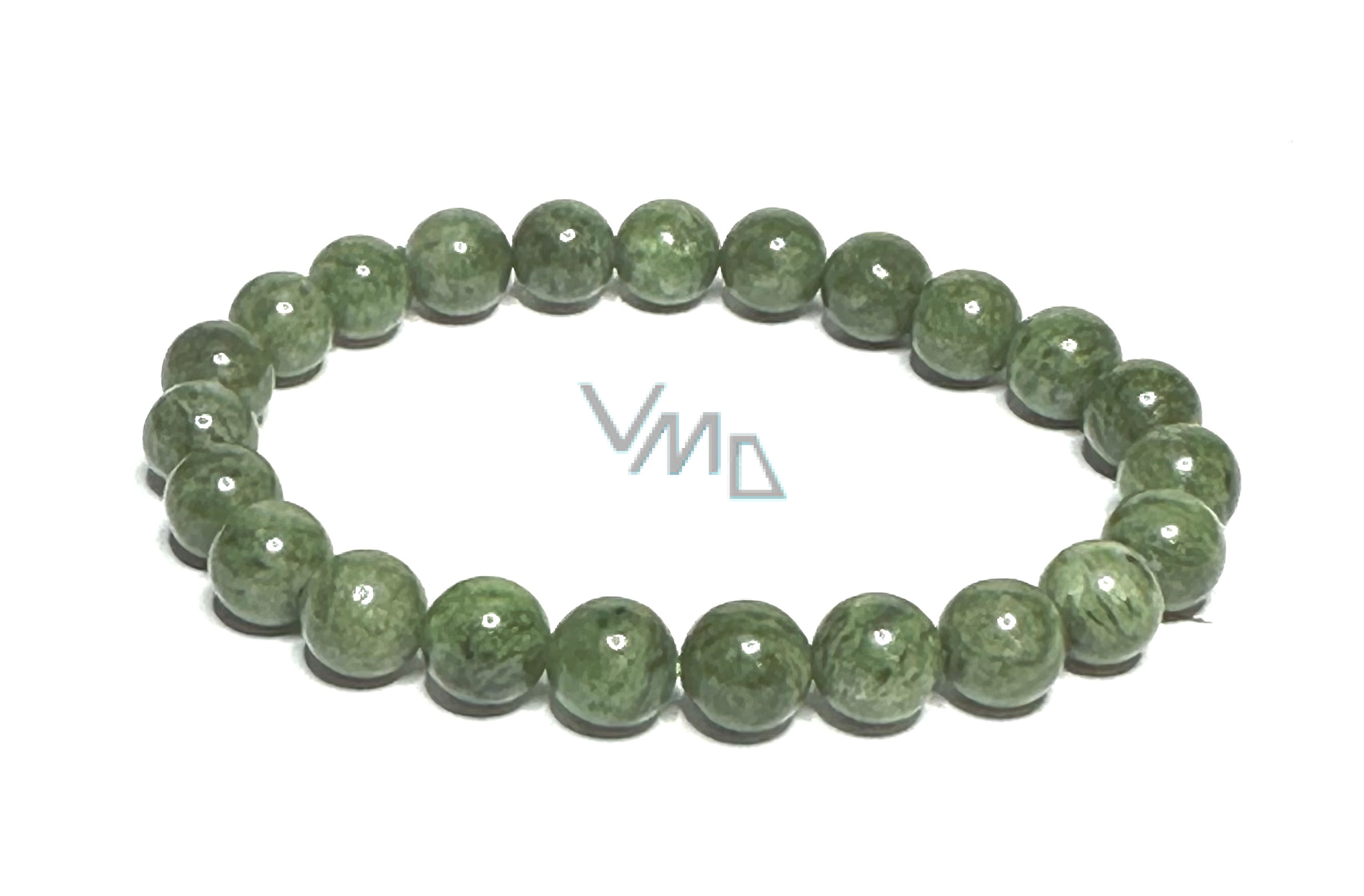 Diopsid náramek elastický přírodní kámen, kulička 8 mm / 16 - 17 cm, kámen dvojí očisty